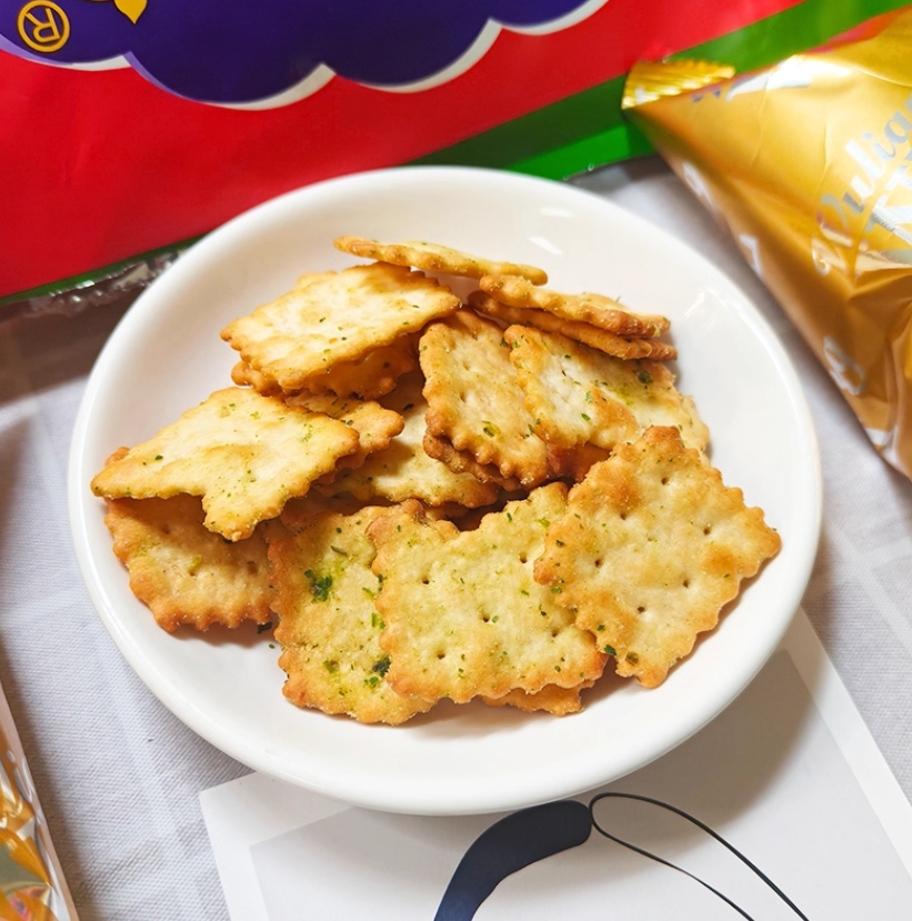 獨特風味,口感絕佳:特別調配的香蔥排骨味,香氣濃郁。香蔥的清爽與排骨的醇厚完美融合,每一口都充滿了濃郁的香味。餅干經過精心烘焙,口感酥脆,咬下去“咔嚓”作響,讓人欲罷不能。